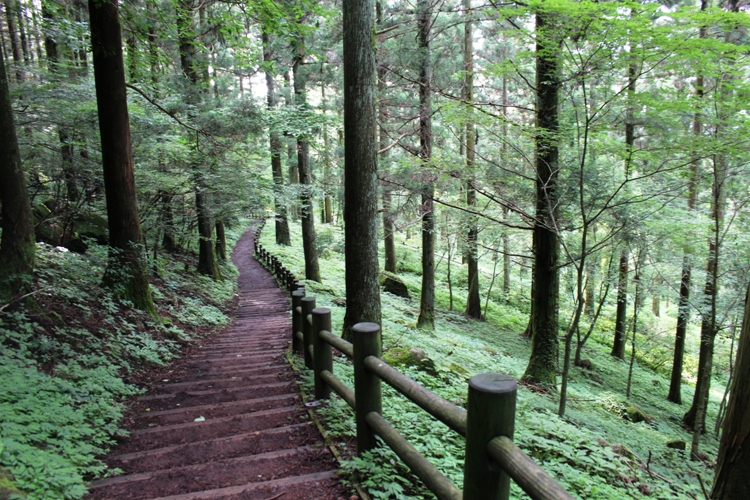 〈緑色が濃くなる登山道を竜神平へと急ぐ〉 |