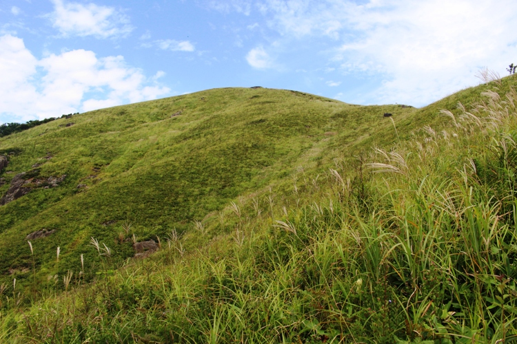 〈草地の中を登り行く南登山道〉 |