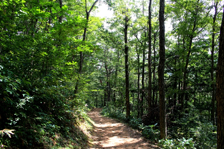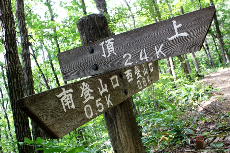 西尾根上の分岐からは南登山口へのルートを採った。沿道のススキの中にナンバンギセルの姿がないかと探したが、ここでも草原が濃すぎてススキの根元を探すことは甚だ難しかった。直ぐに南面の草原も終わって、名の通りのミズナラの林間の道となった。ここのミズナラの森もいつもながらに美しいと思う。広大な森の中にジグザグを描く登山道を辿って行くと南登山口へと導いて行ってくれた。