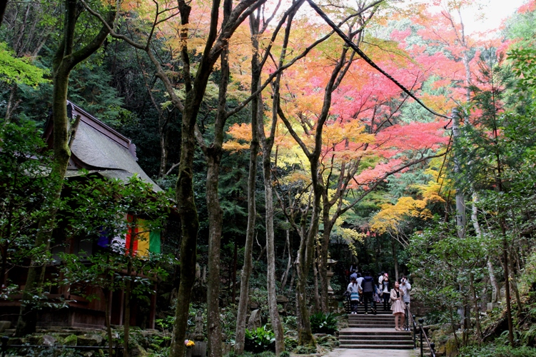 〈谷間を上って行く参道は綺麗に色付いていた〉 |