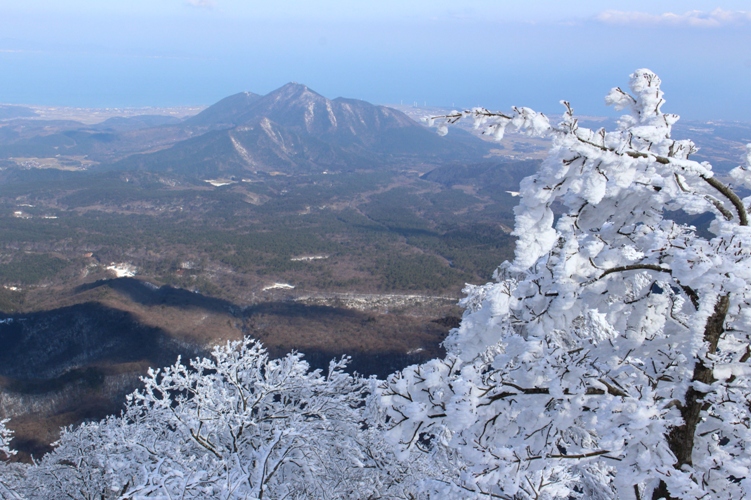 〈陽光に照らされた霧氷越しに孝霊山を俯瞰する〉 |