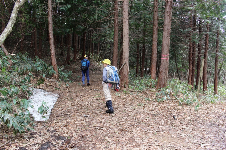 〈十文字峠への下山道にもまだ残雪があった〉 |
