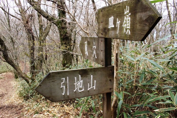 標高1150メートルほどの稜線上の樹々はまで芽吹きまで進んでいなかった。引地山分れから引き返して竜神平への正面道まで下りてその道を採った。沿道には花々も少なく、まだ春が訪れていない感じでもあった。竜神平への途中のシコクスミレの群生地まで行って咲き具合を見ておこうと思っていたが、そこのシコクスミレもまだ姿を現していなかった。