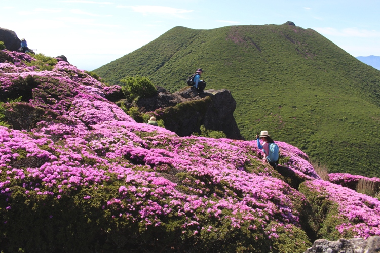 〈南峰西斜面に立ち満開のミヤマキリシマを堪能する!〉 |