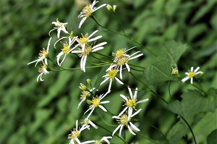 お盆の休暇中とあって上林森林公園の広場や駐車場には多くの車が停められていた。風穴に赴くと登山者ではない避暑客の姿が目立った。風穴を後にして竜神平への登山道を採った。登山道沿いには盛りを過ぎたギンバイソウが乱れ咲き、さながらギンバイソウ・ロードといったところであった。そのお花畑の中に背を伸ばしてウバユリも盛んに咲いていた。背は低いがクサアジサイの花も目立った。そんな夏の登山道を登って行った。