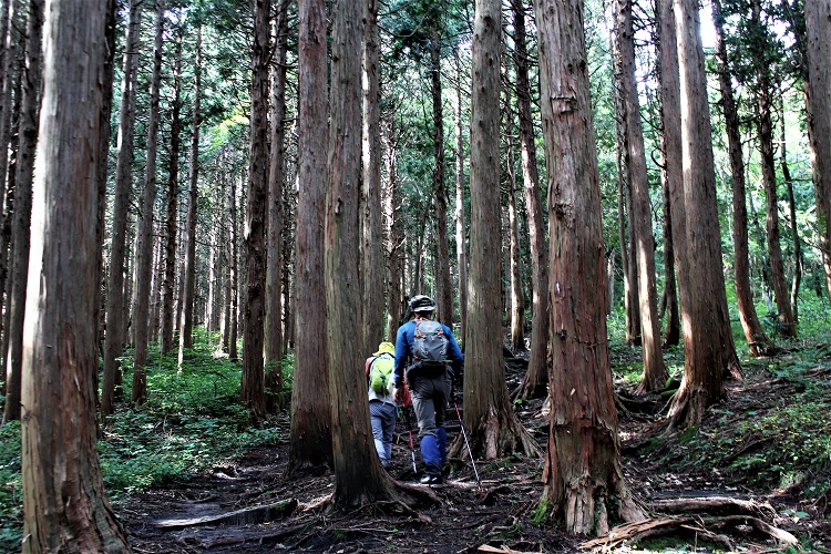 〈出雲峠へと延びる管理林道を登り行く〉 |